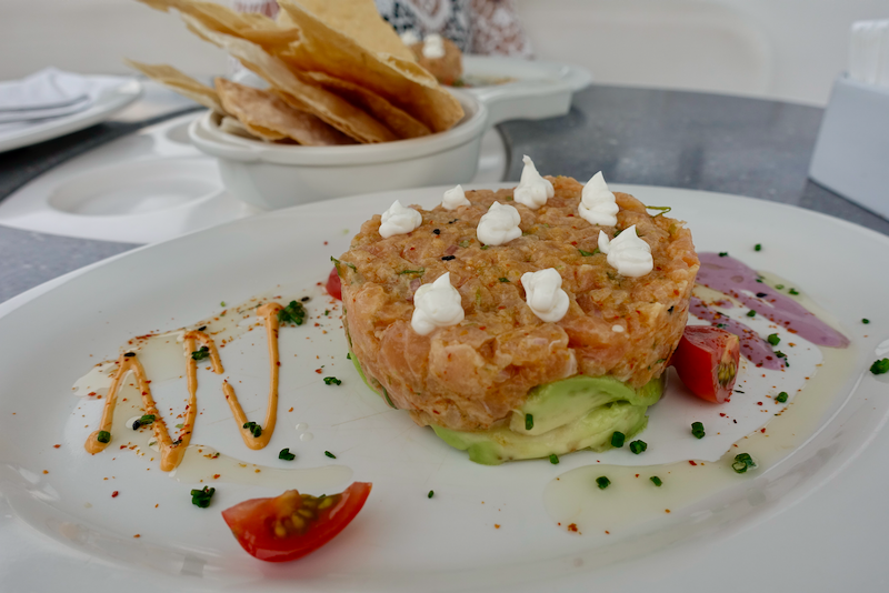 A chef comes on board and brings out a series of three appetizers.