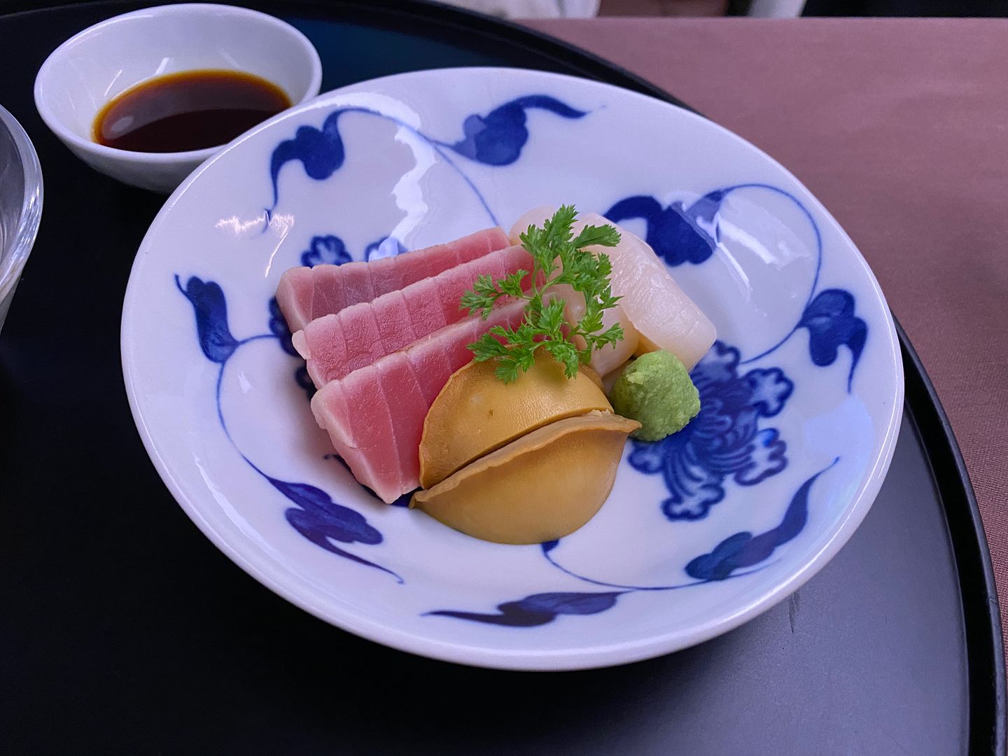 Steamed Abalone, Seared Tuna & Scallop “Sashimi”
