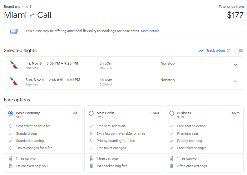 MIA-CLO Google Flights