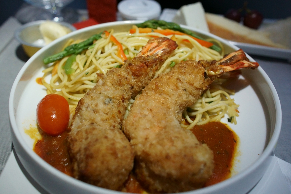 They kept smiling all the way long – even when a near miss spilled drink happened (yeah feeling a bit tipsy) or fighting her way among journalists on the aisles with the pax lunches!