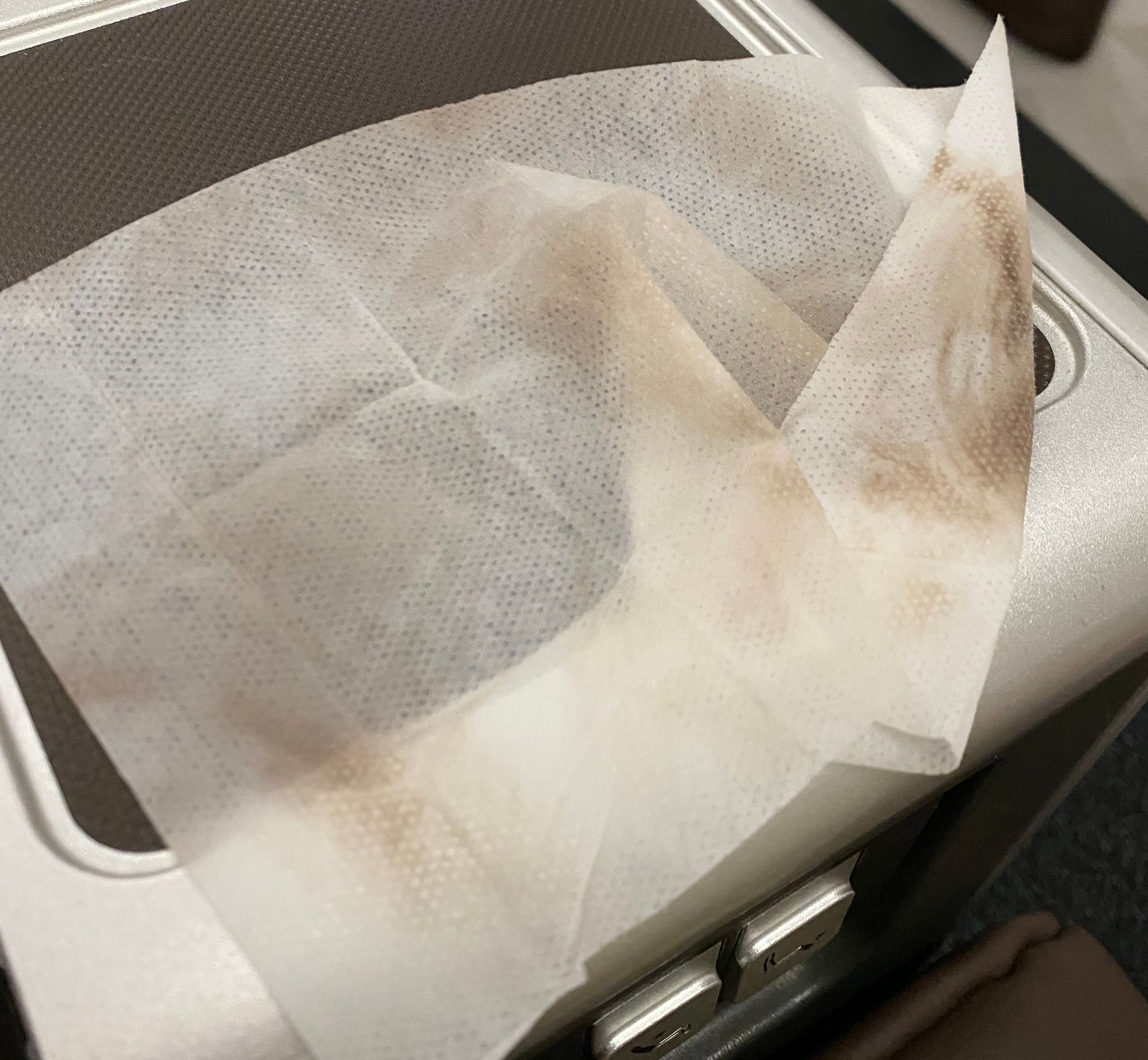 Not surprised if HA cleans their offices like they clean their planes. I took this last weekend after one wipe of the armrest.