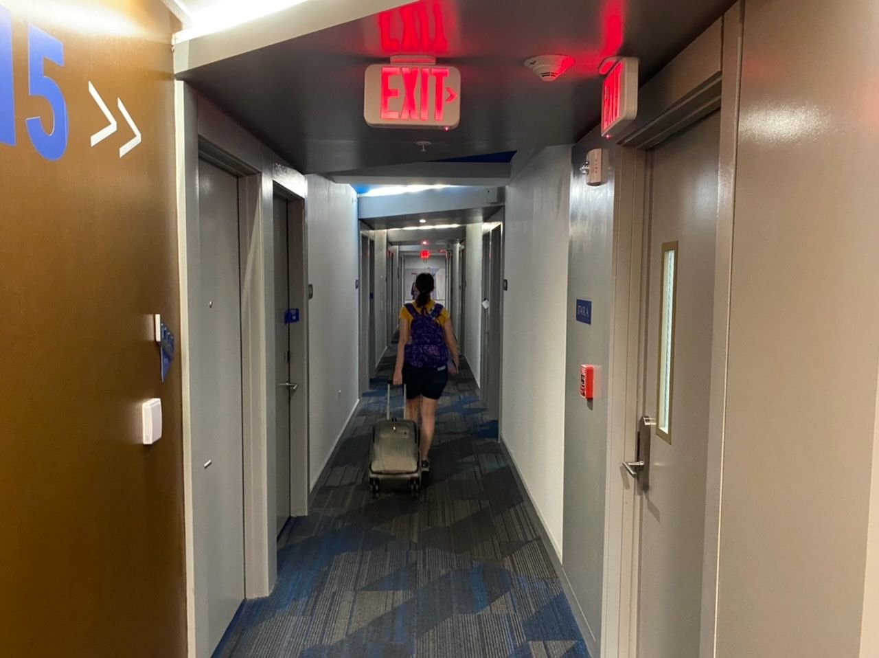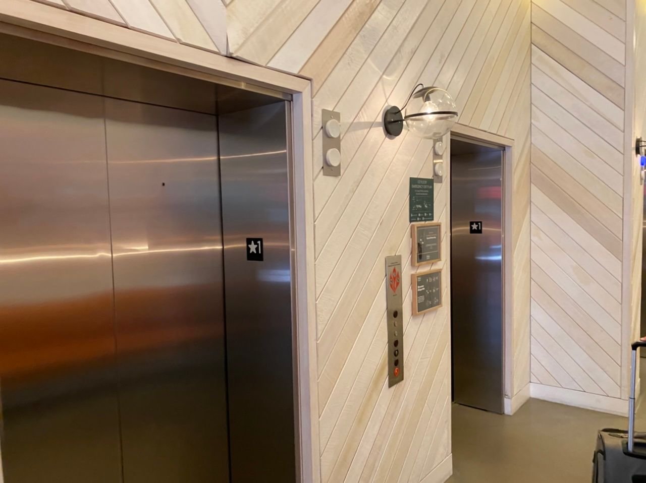 We had to show our IDs, have our temperature taken, and give our room number to take the elevator to the top. This is the mini-lobby view of the top floor.