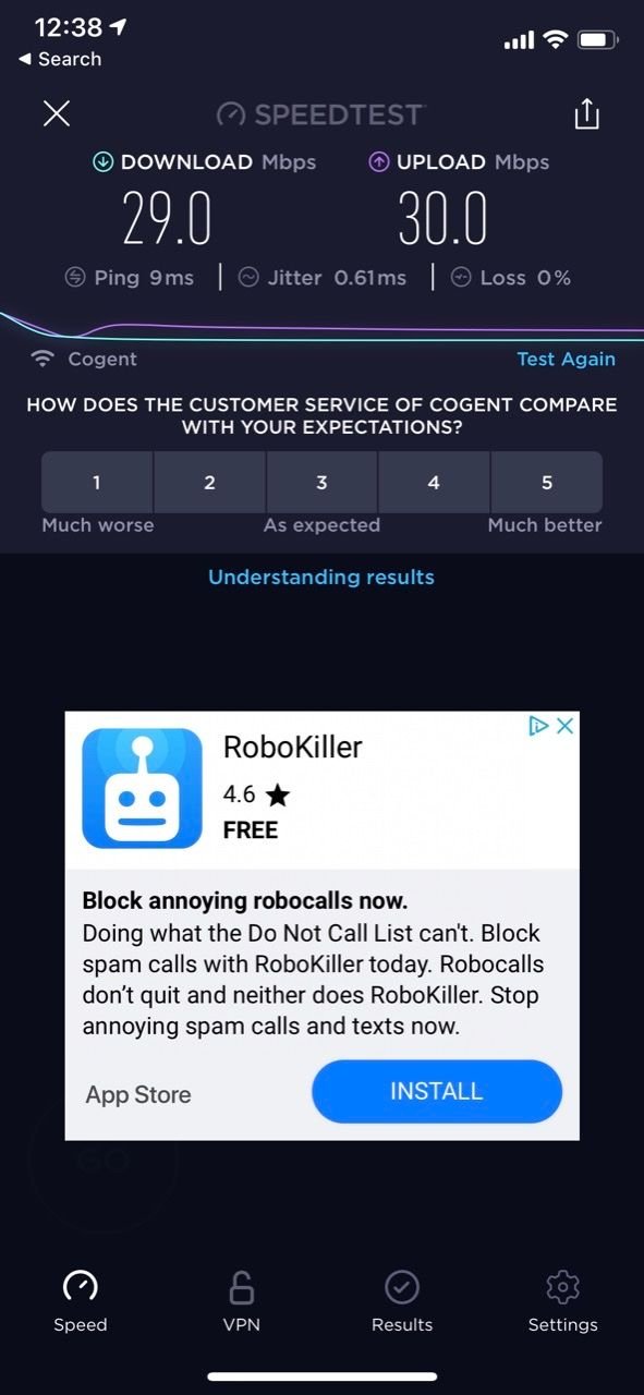 Speedtest result. Internet worked great, no connection issues, due to my diamond status I get "premium" internet so take that for what it's worth, I can't compare to the "Non-premium". But I really do appreciate having a stable and efficient internet connection.