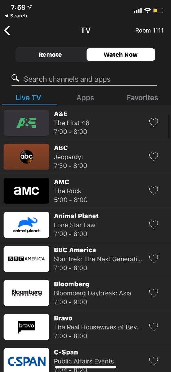One other cool thing I'll point out is that on the hilton app, there is a "room control" button that I hadn't seen before. Clicking it, you get access to your TV, thermostat, and lights. It works great - almost no delay.
