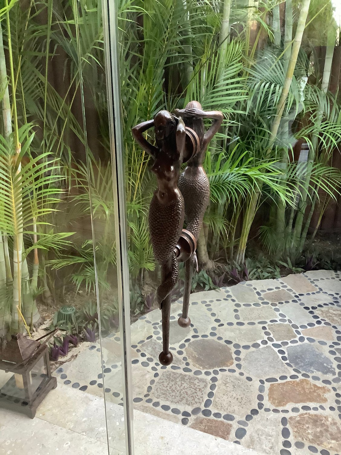 Mermaid handle to outdoor shower