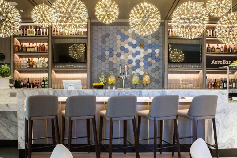 Occupying more than 1,400 square feet, the WiFi-enabled space with lounge chairs and dining seating offers charging pods in addition to AeroBar with high chairs, creating zones to suit different travellers’ preferences when they depart and transit at the terminal. AeroBar is accentuated with a 3D ceramic illustration portraying the shape of Texas map, offering a drink menu of wines, liquors and beers including local brands with the likes of Rahr, Shiner and Dallas Blonde or Italian Lavazza coffee. As part of heightened hygienic measures, pre-portioned and pre-packaged food items are offered at the self-serve counters.