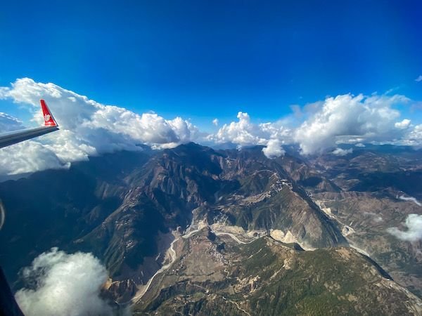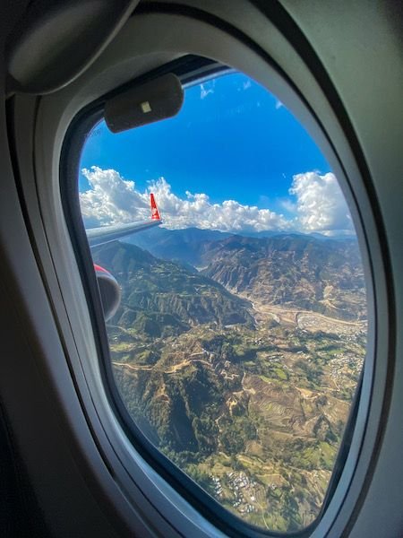 Based on my experience flying into Kathmandu, I would highly suggest you assign your seat strategically. When you look out of the window, make sure the sun is behind you, not in front of you. So it all depends on what time a day your flight is.