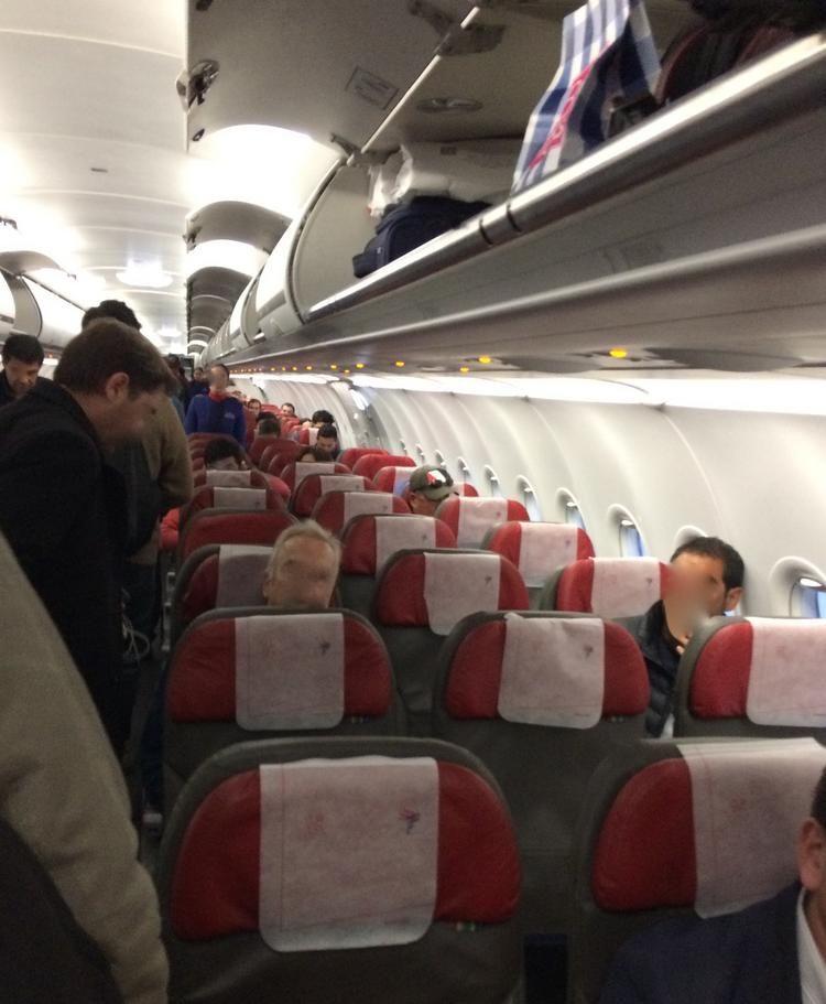 One word on the boarding process on today’s flight: there are three queues, one for window seaters, one for middles and one for aisles. As you can see, I’m in the middle seat gang. First board those by the window, then my group, then the aislers. It all sort of seem to work and we’re all set in a jiffy, a full load on a very tight 321.