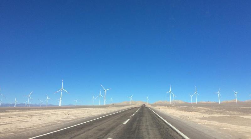 We’re coming closer and closer to Atacama and the landscape is becoming increasingly worthy of a Dali painting. First is a field of wind turbines, then an expanse of solar panels then, all of a sudden, rise the Martian landscape of the Cordillera de la Sal. We stop the truck, missing a ravine by a mere meter, and take a look. This is nothing like we’ve ever seen.
