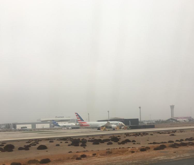 We take off in the grey Santiago morning, taxiing past some AA birds on maintenance and the Orbis flying clinic.