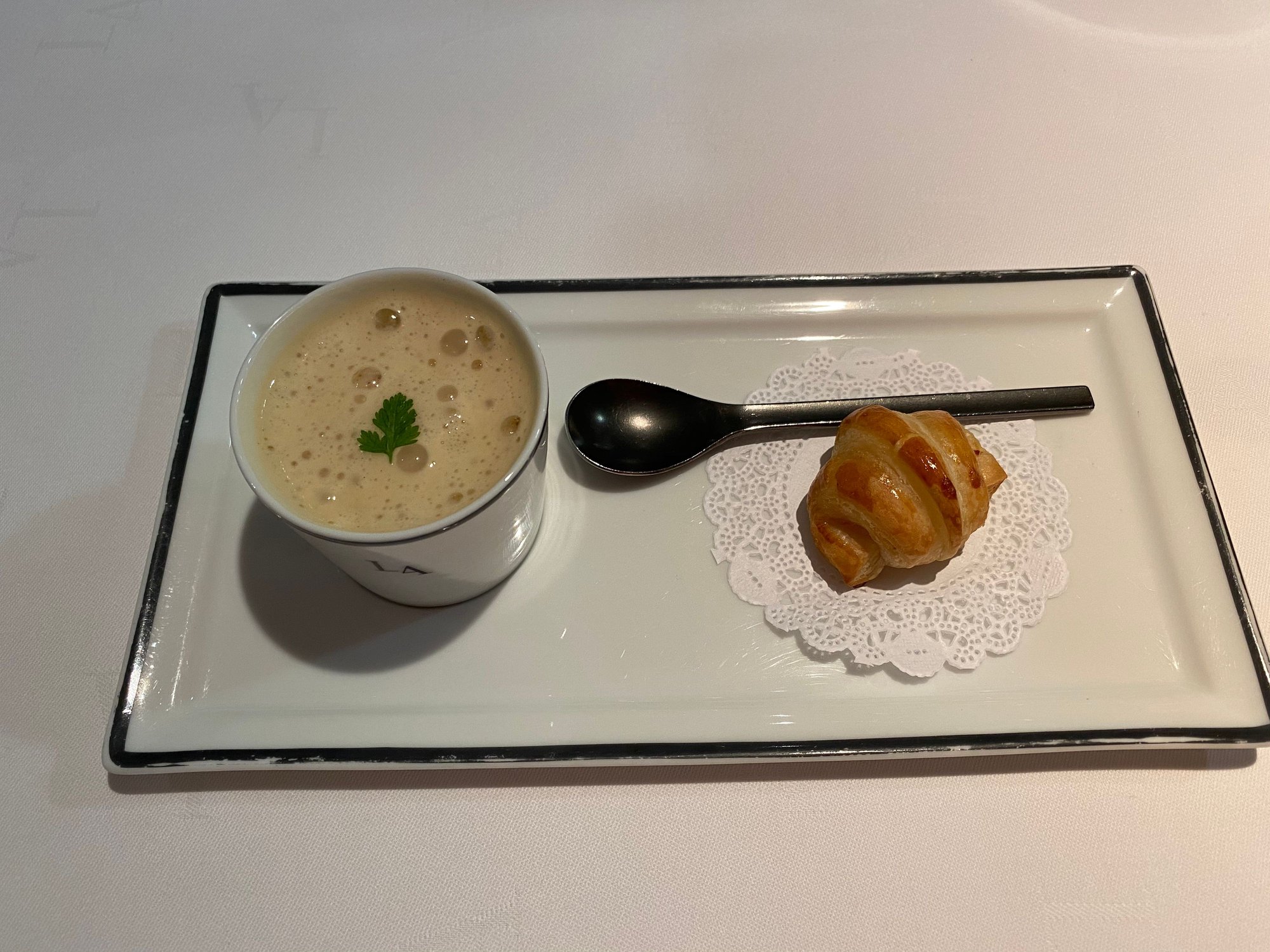 Mushroom soup and bacon croissant - amuse bouchée 2