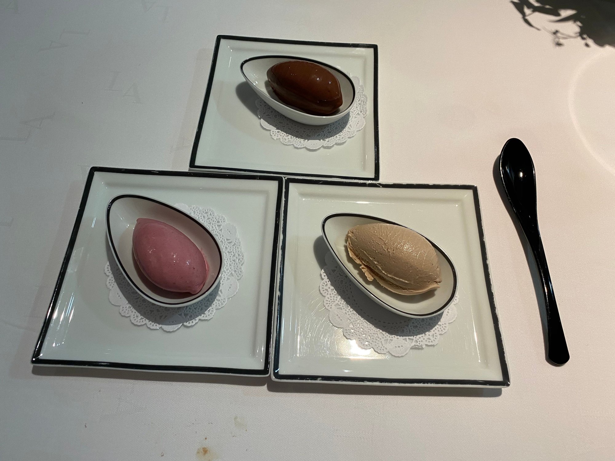 My palette freshener - blackberry sorbet , dark chocolate and hazelnut ice creams