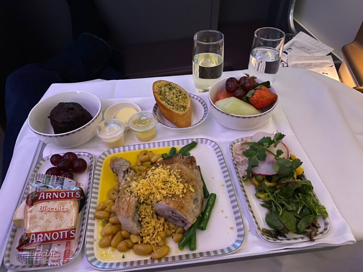 Onboard - pretty much normal experience apart from single tray meal. Nuts and drinks after takeoff, drinks kept topped up and attentive service. Meal single tray but included all the usual including dessert and cheese etc. typical excellent SQ service.