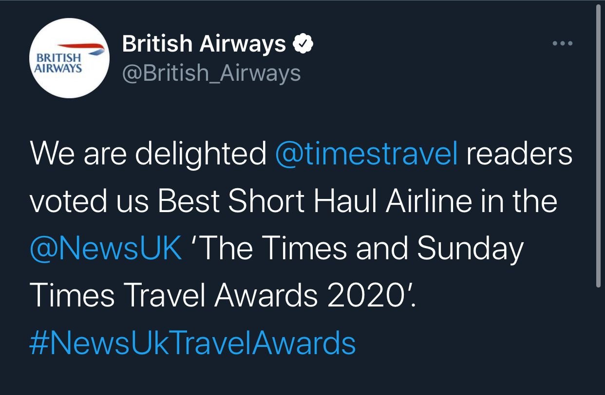 So BA have won another award for the Best Short Haul Airline: