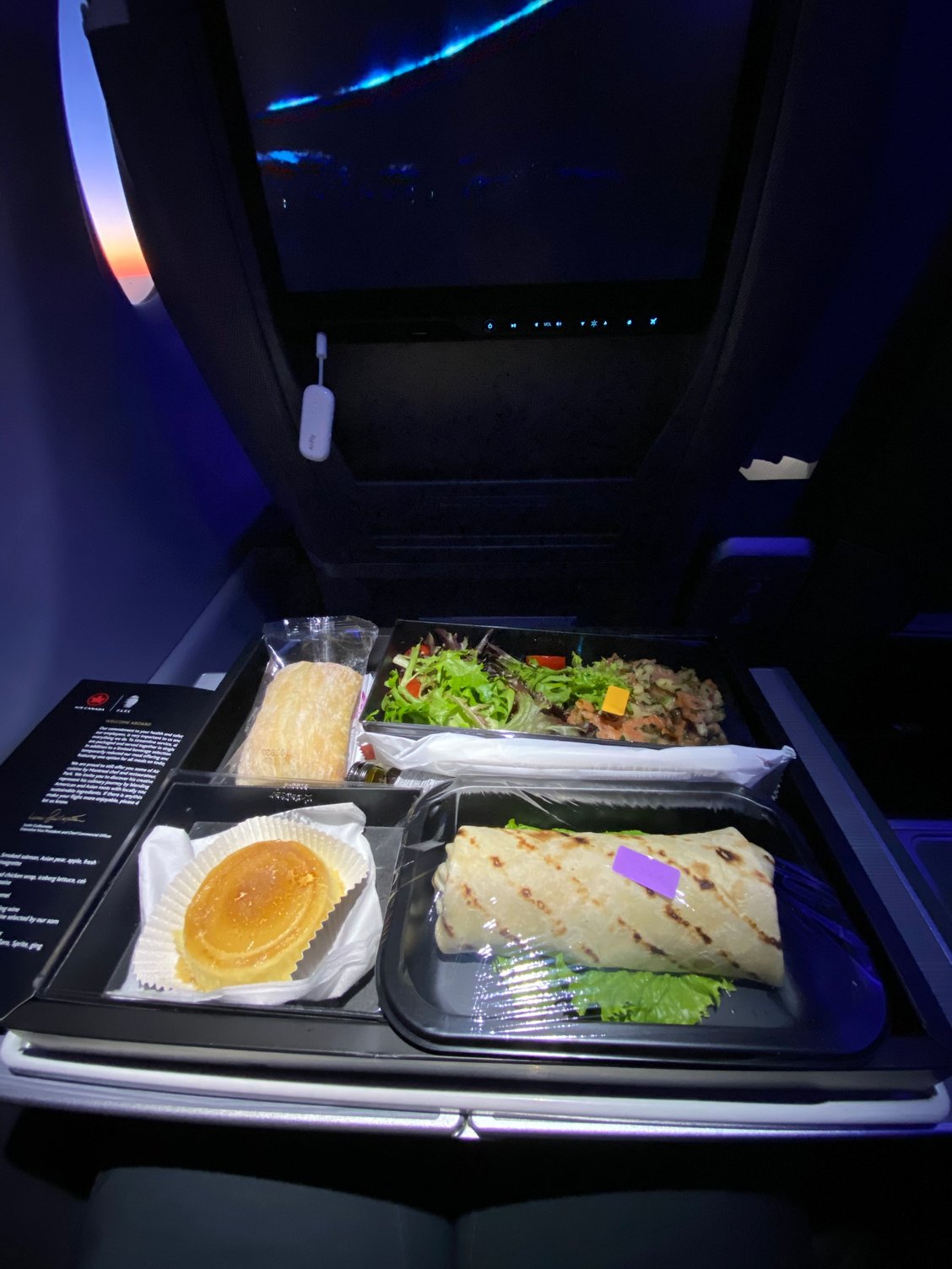 There were only 3 of us in J but economy looked crowded. Pretty bumpy flight tonight too. Food hasn’t change in-flight and in the MLL. Having just come off two EY longhaul J flights and connecting to a AC transcon J flight the catering seemed like a real let down. But I guess it’s better to get something than nothing.