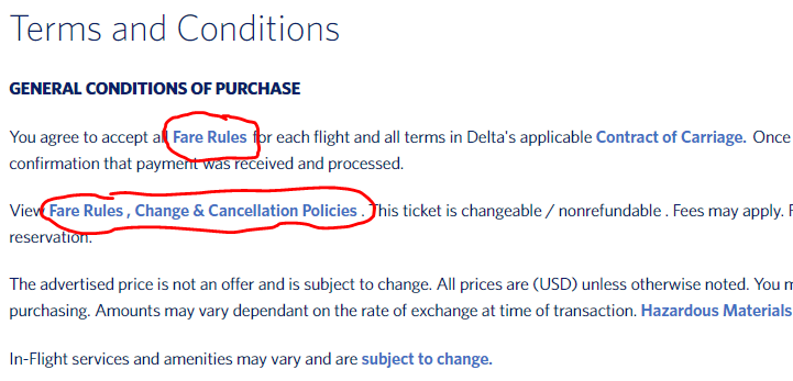 There's a couple of links at the bottom of the delta.com Trip Summary page when pricing an itin that will bring up a copy of the fare rules (see below). Unfortunately, once you've purchased, the only way to get to them again on delta.com is to re-create an itin with those fares. matrix.itasoftware.com will also show the fare rules when you price an itin. You can identify if the fares are the same from the fare basis codes (IN1HV6D2 and IN1HV6D3 fares in your case). If you have an ExpertFlyer account, you can look up fare rules from the fare basis codes without having to actually price out an itin. ExpertFlyer will also show you all the published fares on a route so you can see which ones have the fee for a refund, and which ones don't.
