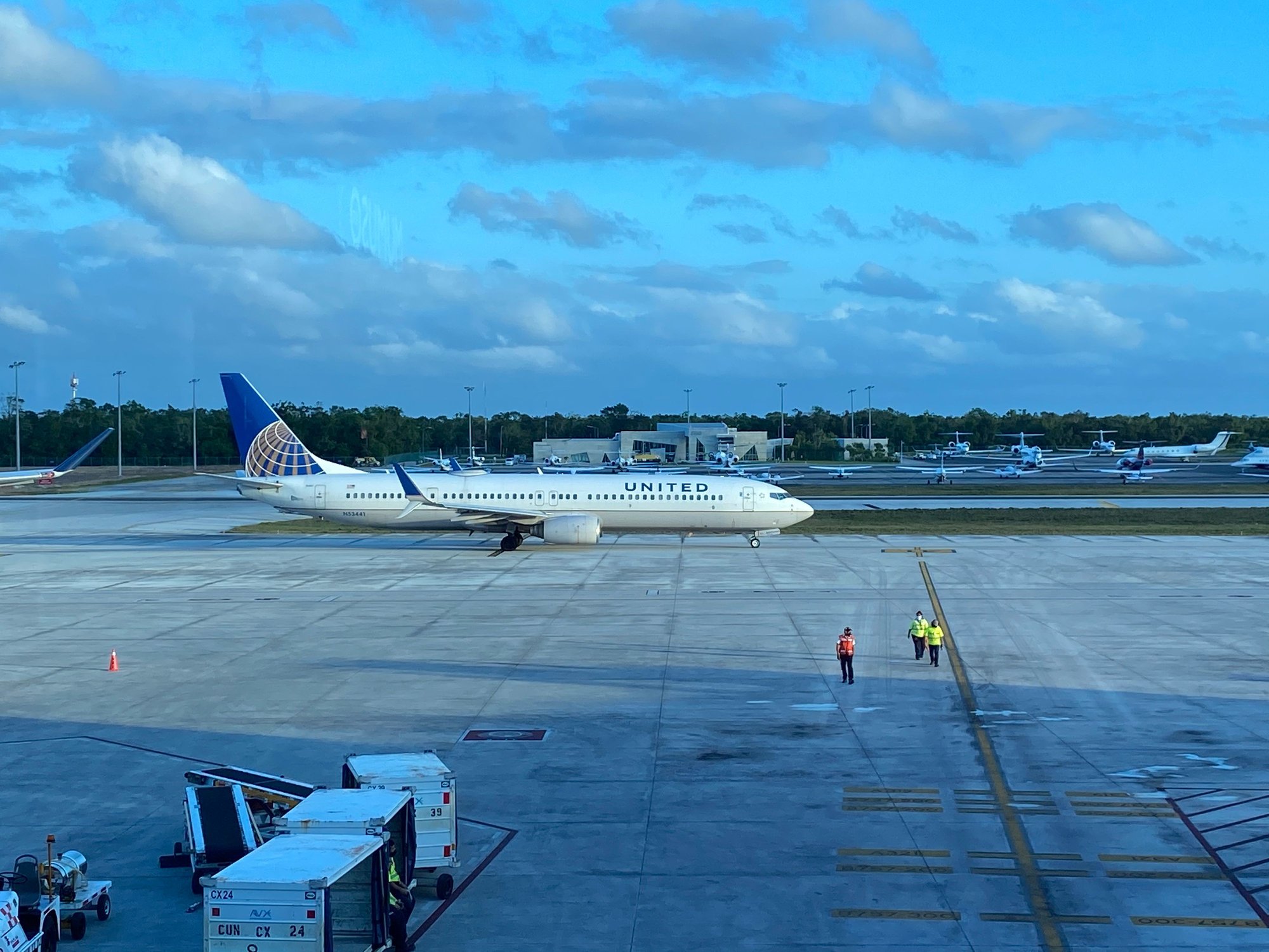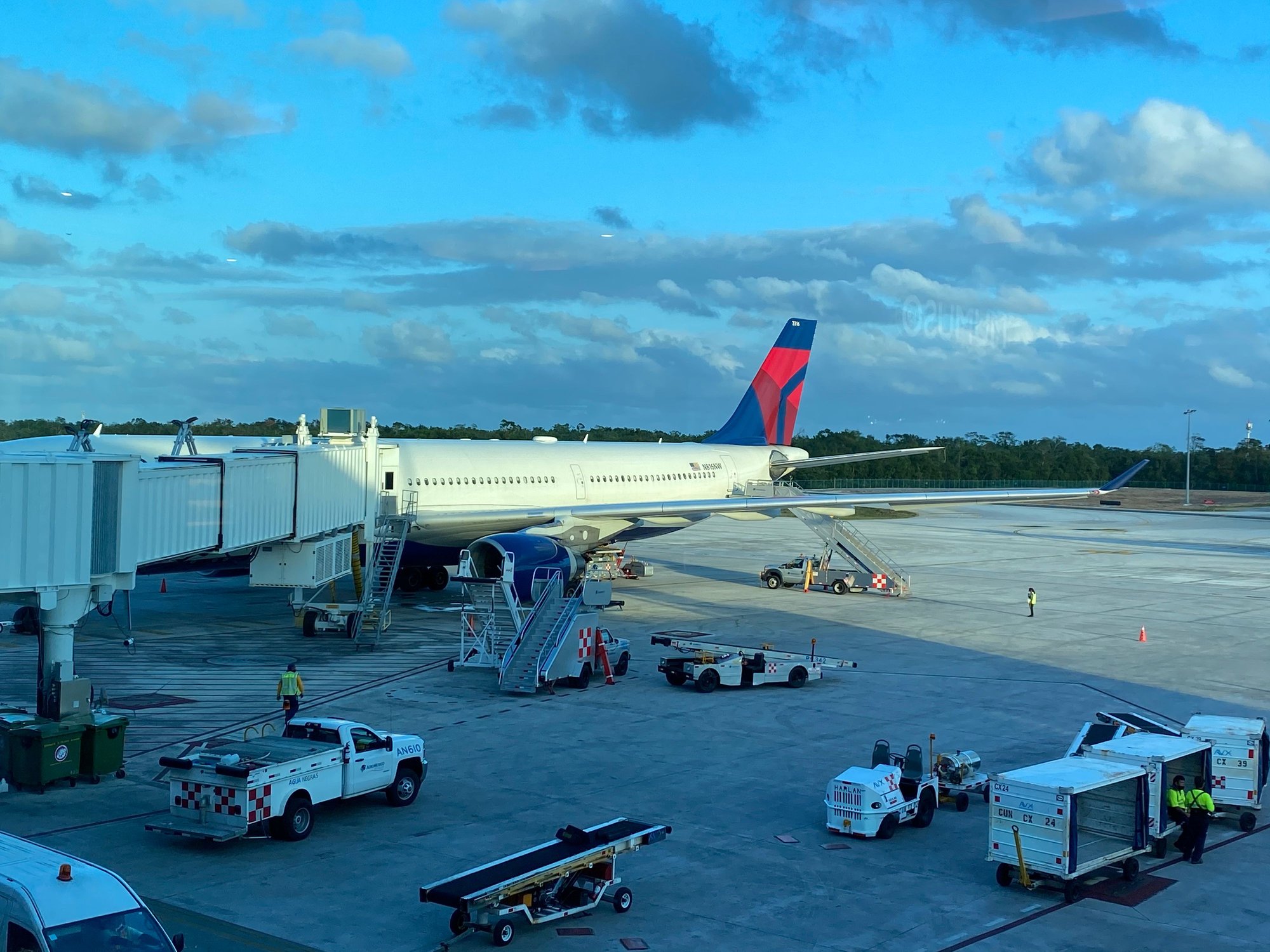 After enjoying our last few hours on the beach we headed back up to our room for a quick shower and throwing the final items in our bags. We retrieved the Blueberry from the front of the hotel and loaded our bags. Soon after we were off for the quick drive to CUN. We topped off the tank before returning the car to Hertz. There was a large scratch on the trunk that they tried to charge us for, thankfully we had taken plenty of photos when we picked up the vehicle and once we showed that to the lot manager we were off to the terminal.