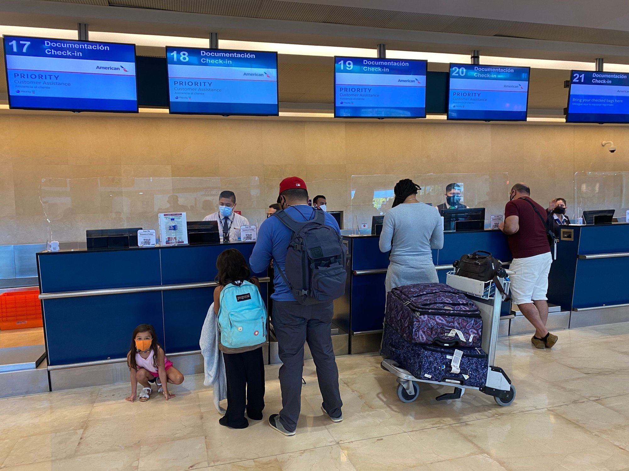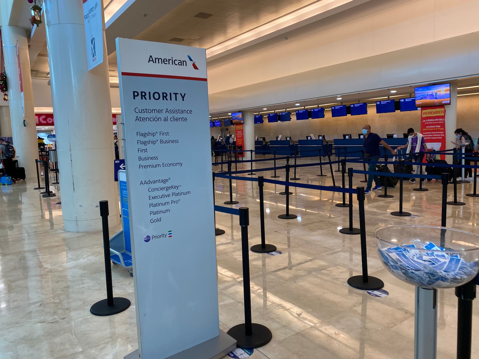 After a quick shuttle ride we were dropped off at T3 to check our bags. The priority line was fairly empty and we were airside in no time