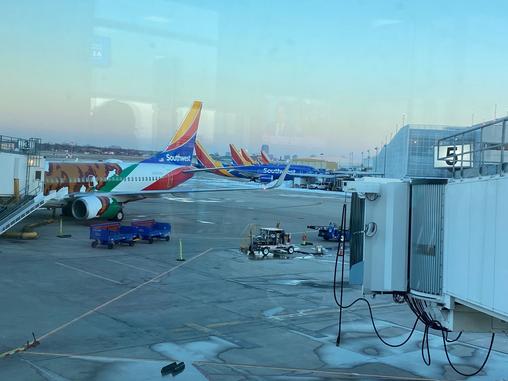 The drive to the airport looked a bit different than usual with snow still covering some of the roads and snow/ice piled up on the curbs and medians of others, but 15 minutes after leaving the house we were pulling back into the Love Field parking garage to begin another trip to Colorado!