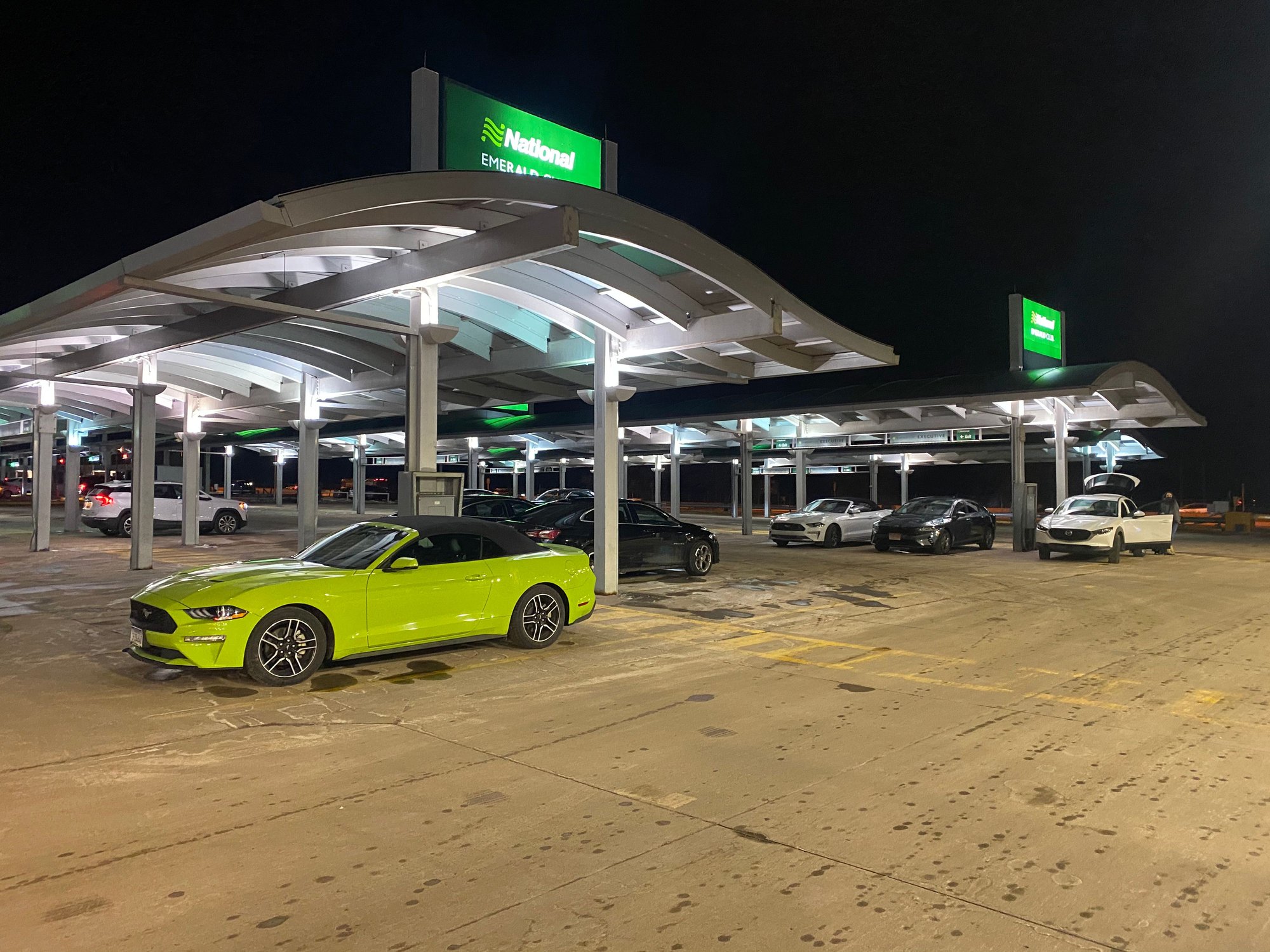 Once inside we quickly checked out bags and made our way through security. No line at security as our flight to Denver was one of the last flights of the day. After a quick stop at Cantina Laredo for a beer and guacamole it was time to board. The flight was uneventful and we landed in Denver on time with no wait for a gate this time. Baggage claim was somewhat chaotic as WN had 8-9 flights being unloaded on the same belt. Fortunately the wait for bags wasn’t too long and we hopped on the National shuttle to go and pick up our car.