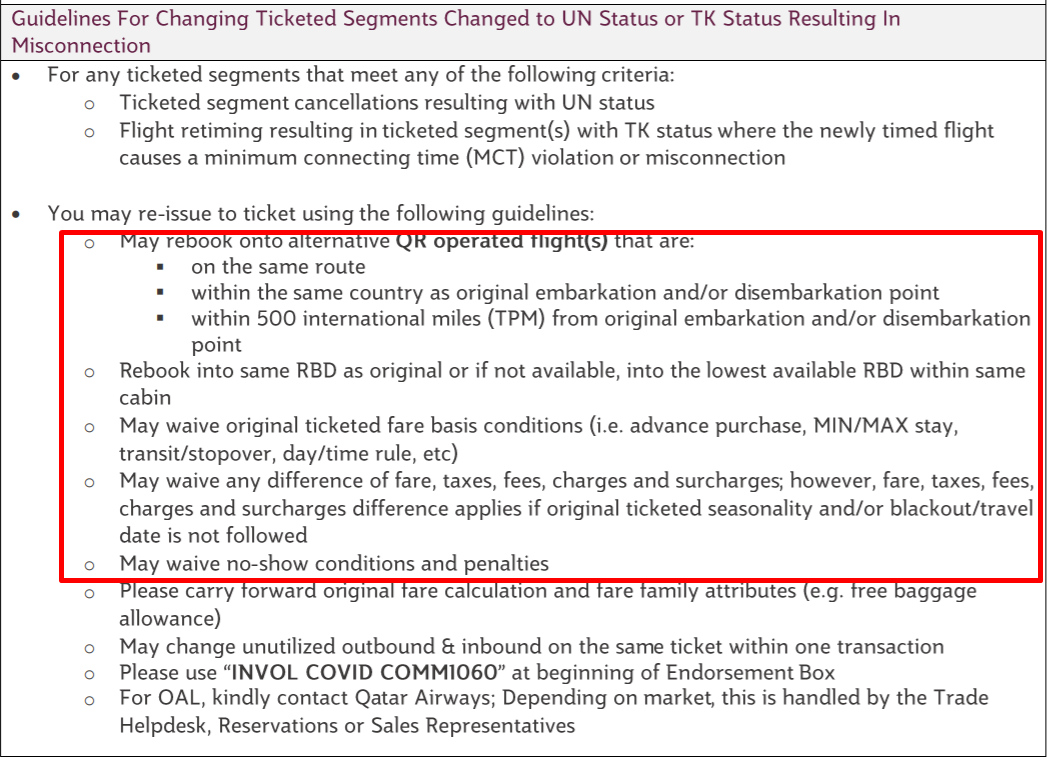 3. Rebooking for flights with UN status (Cancellation) and TK (schedule change) resulting in misconnect.