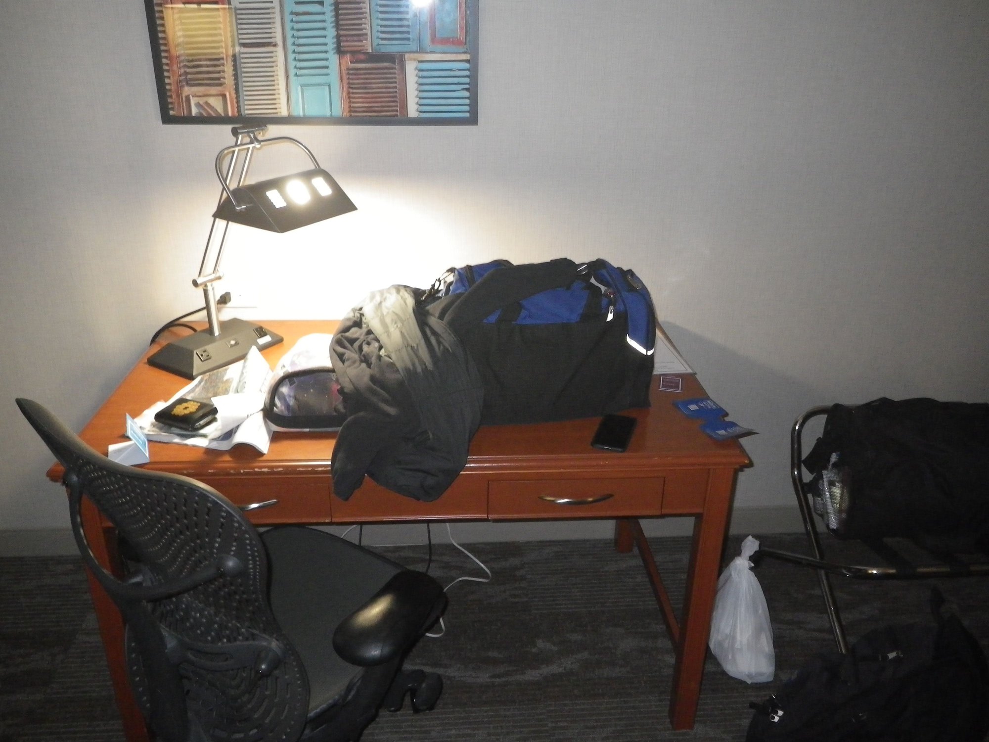 Check In: Got into the lobby some time after 10 pm. Had checked in via the app and requested a digital key but needed two physical keys and wanted to find out how breakfast worked. I'd called before booking to confirm that they were serving something other than a brown bag. Turns out hotel had already stuffed a envelope with a welcome letter and breakfast voucher under the room door before we'd arrived so once we got the room keys, headed upstairs. Here's the envelope and its contents: