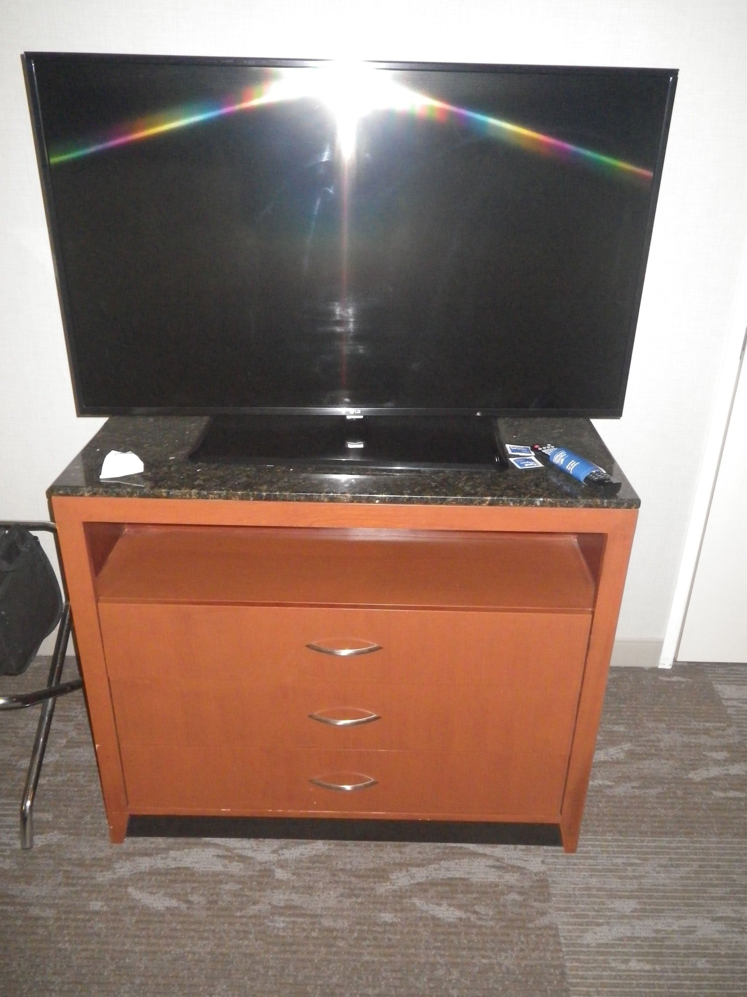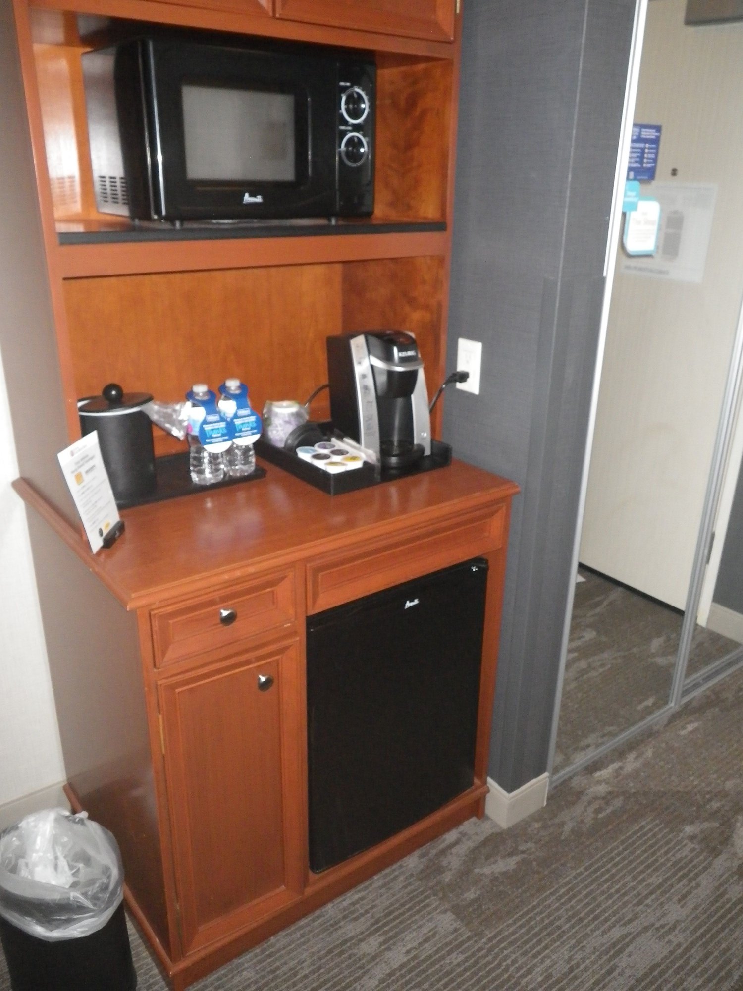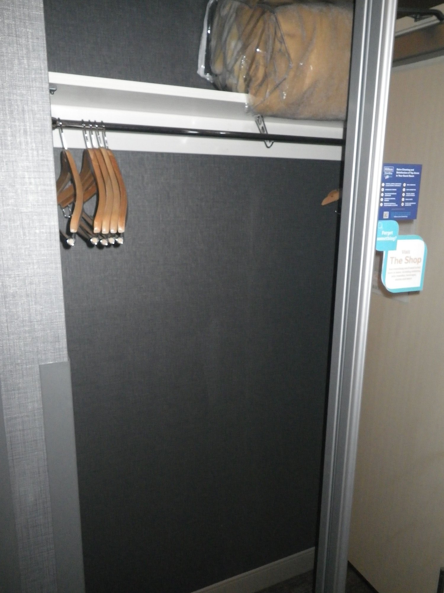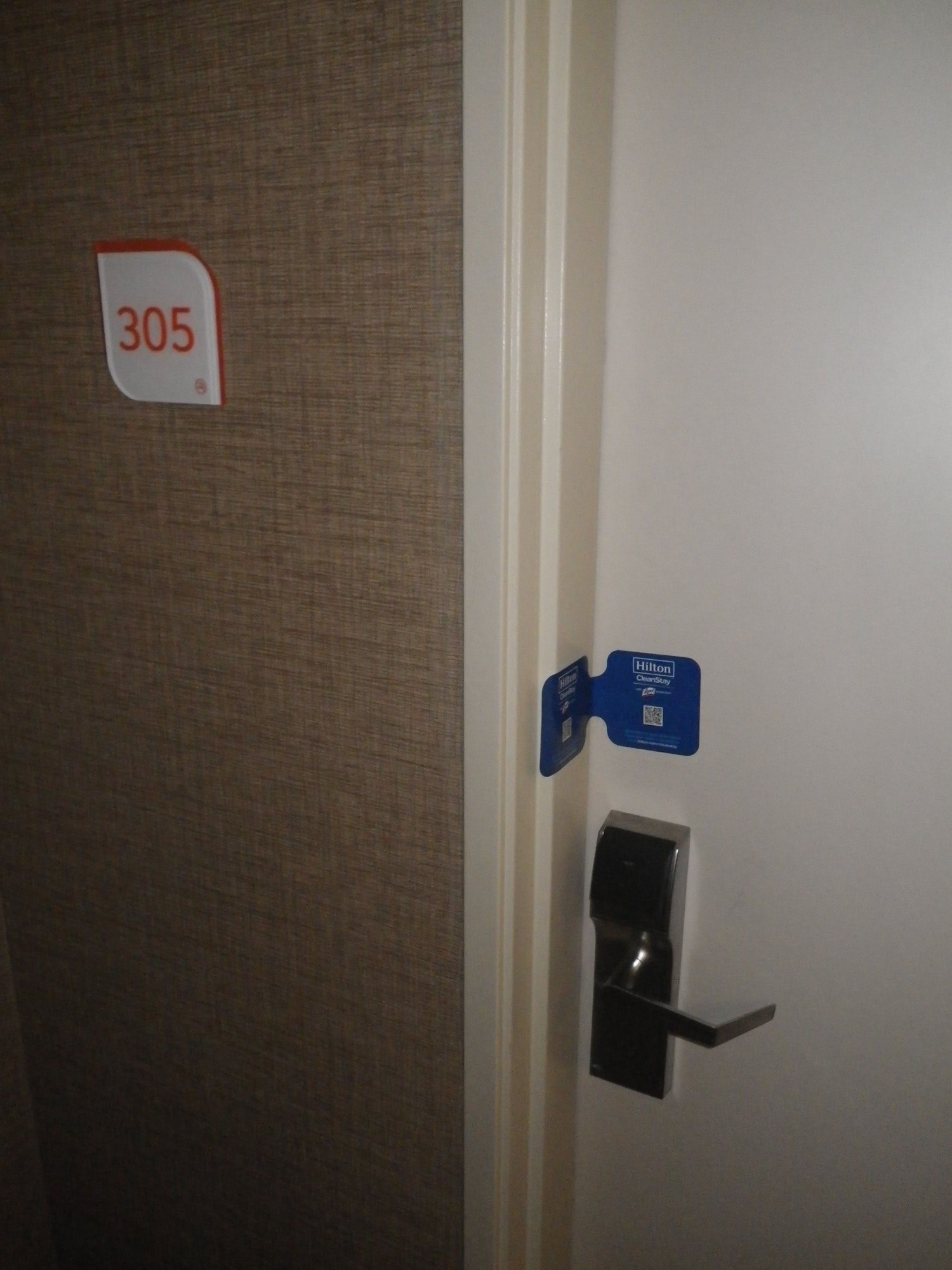Room: I'd preselected 305 (top floor). I'd note that the room faces US2 - with a bunch of truck traffic so some highway noise to contend with. Also, the wonderful blue Hilton CleanStay sticker was affixed to the door and door jam to show it hadn't been opened since Housekeeping did their thing.
