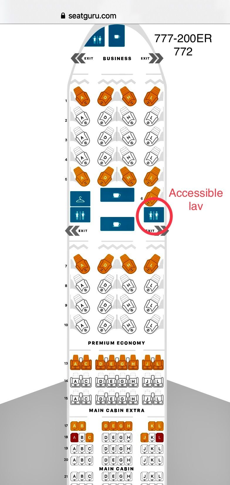 AA Boeing 777-200ER / 772 accessible lavatory location
