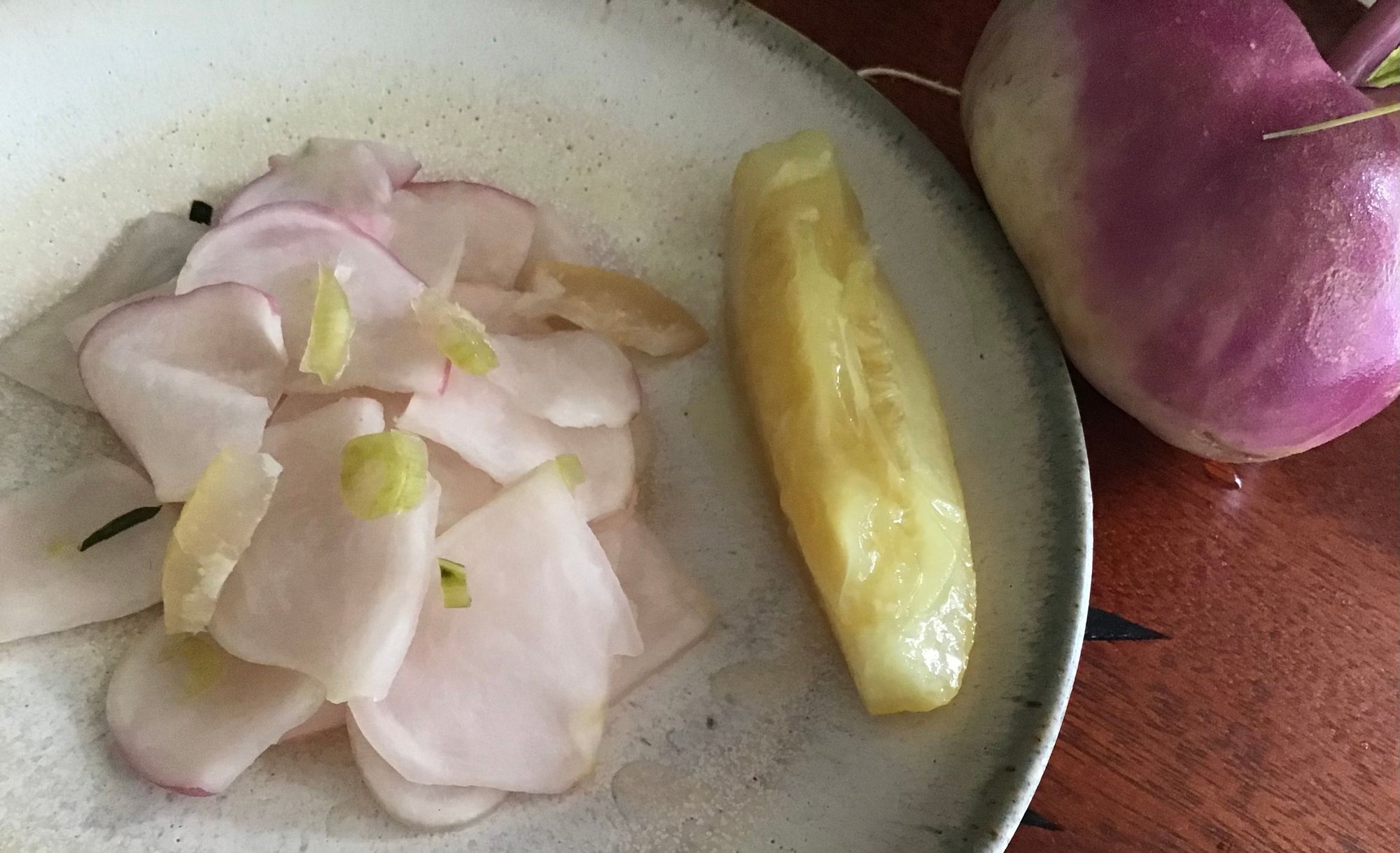 Will have to figure out where to get more young turnips. The season is short (now until July) and we’ve nearly finished our first batch.