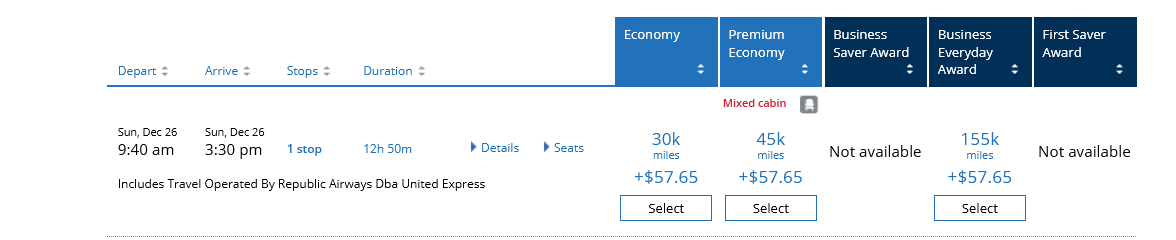 Desired ZRH - ORD - STL business award won't show up on UA's WEB site?