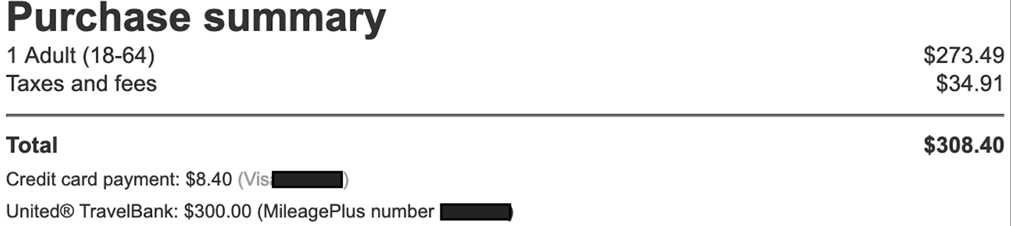United travel bank: $500