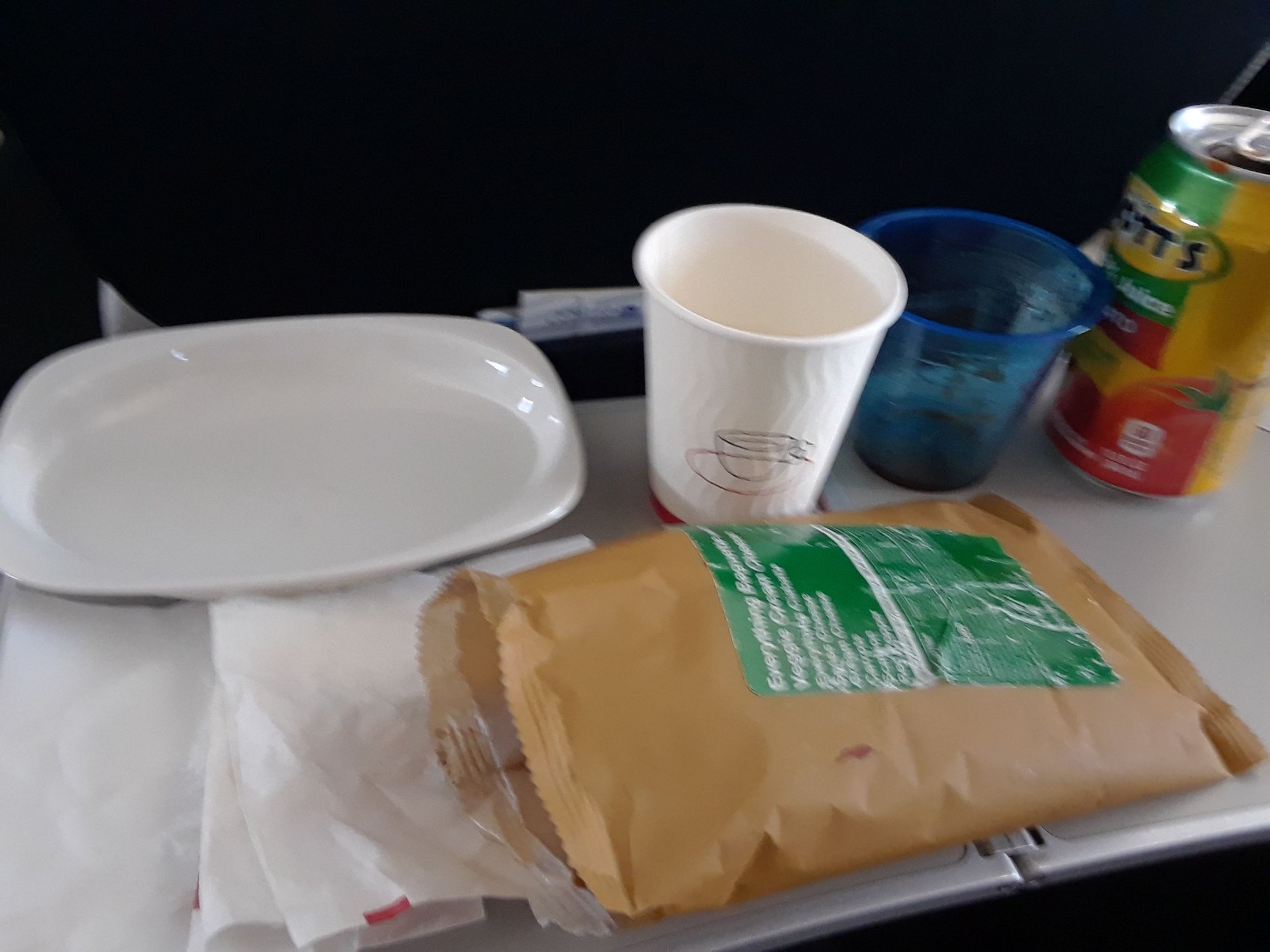7. Either prior to or after consumption, either pour remaining water back into cup or request FA service to remove dish and water as well as used napkins: