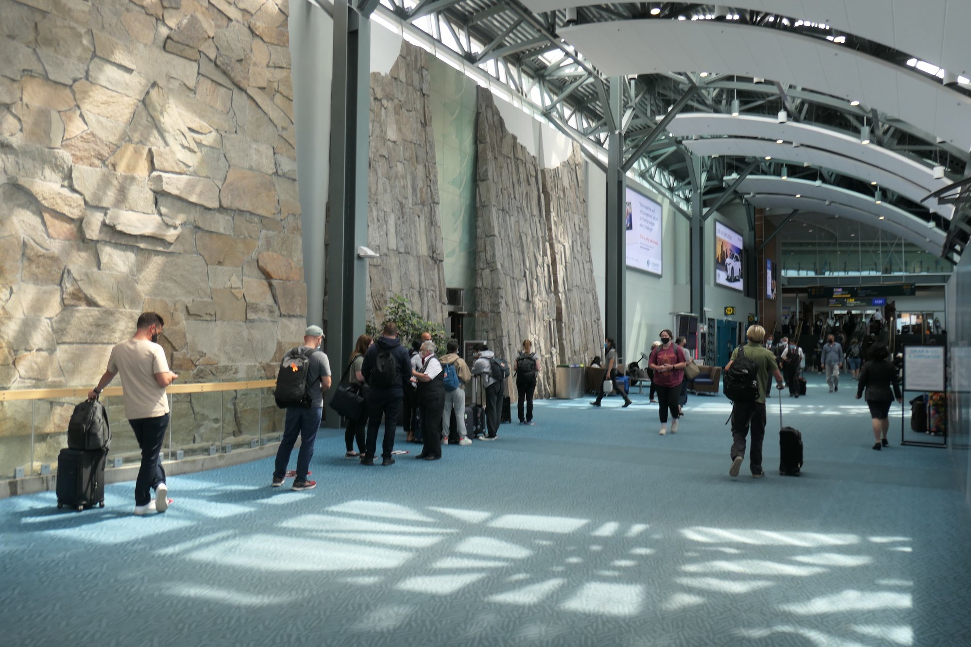 Arrived at YVR to find a 20+ person line to get into the MLL, waited for a few minutes with no movement before asking for a “to go” bag and going to sit by the gate.
