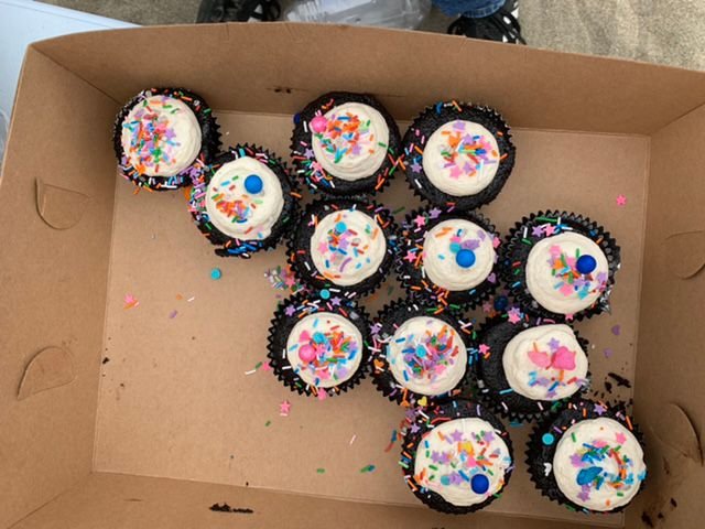 2 chocolate cupcakes (homemade)