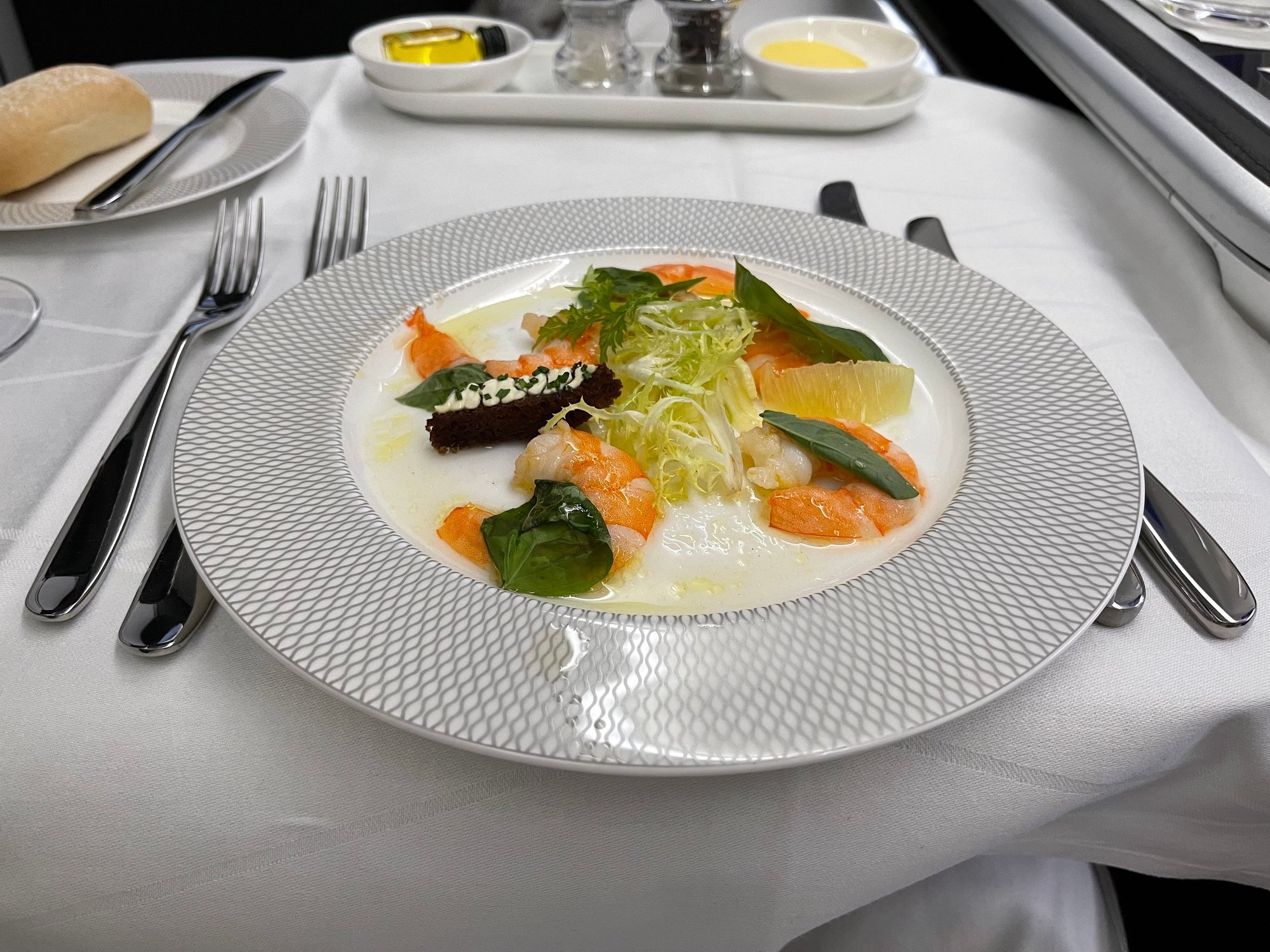 Definitely improved. Here’s a few pictures of F dinner and a healthy snack from the mid-flight menu. BA193 LHR to DFW today. I fly Lufthansa and Swiss regularly as well, and I would say the food quality level is now on par, just more British and a smaller selection.