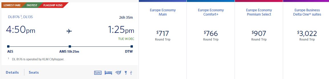 I've never seen delta.com price out an overnight connection of this length westbound. Normally it'll just fail to return a result.