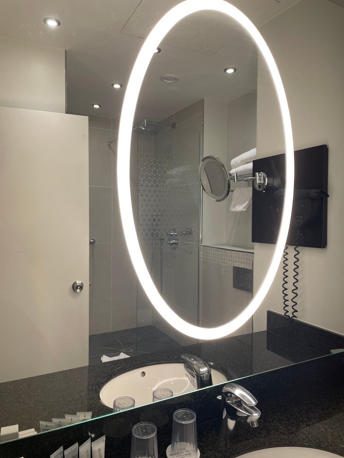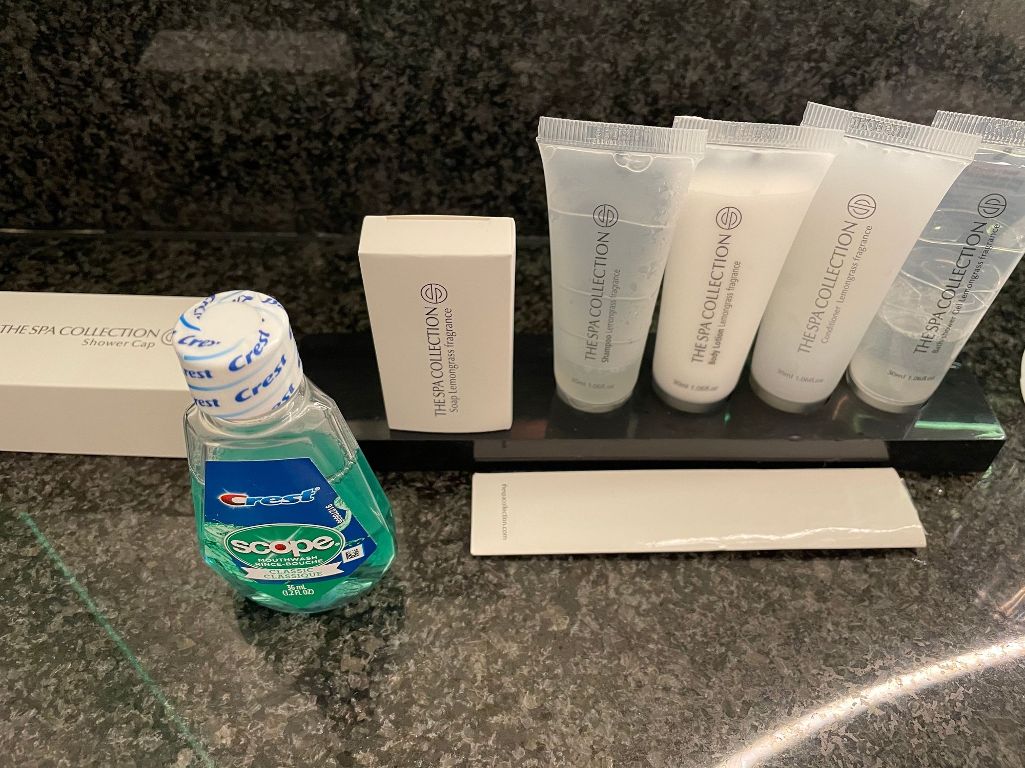 Bathroom with walk-in shower. The Spa Collection amenities