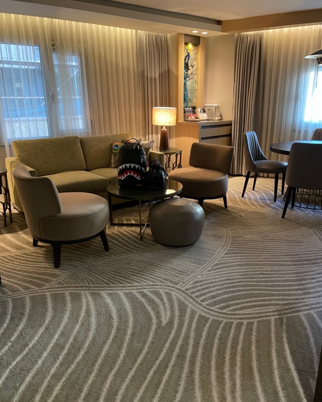 Suite was excellent and even had two U.K. sockets which was handy since I completely forget my power adapters. Strange smell of egg appeared from time to time and seemed to be coming from the shower area but considering this smell was also present in my initial room I made the assumption this was just an issue with the hotel in general.