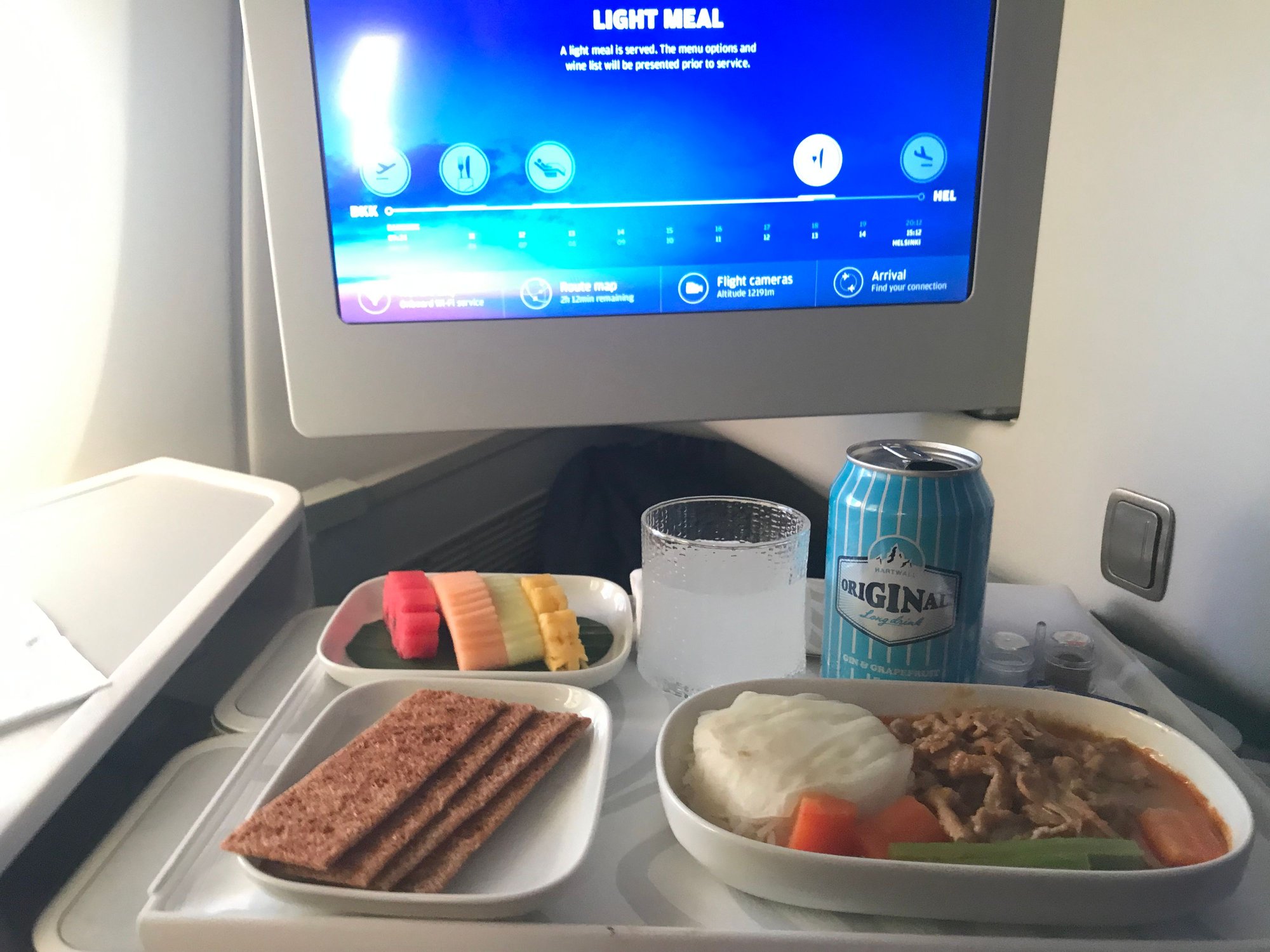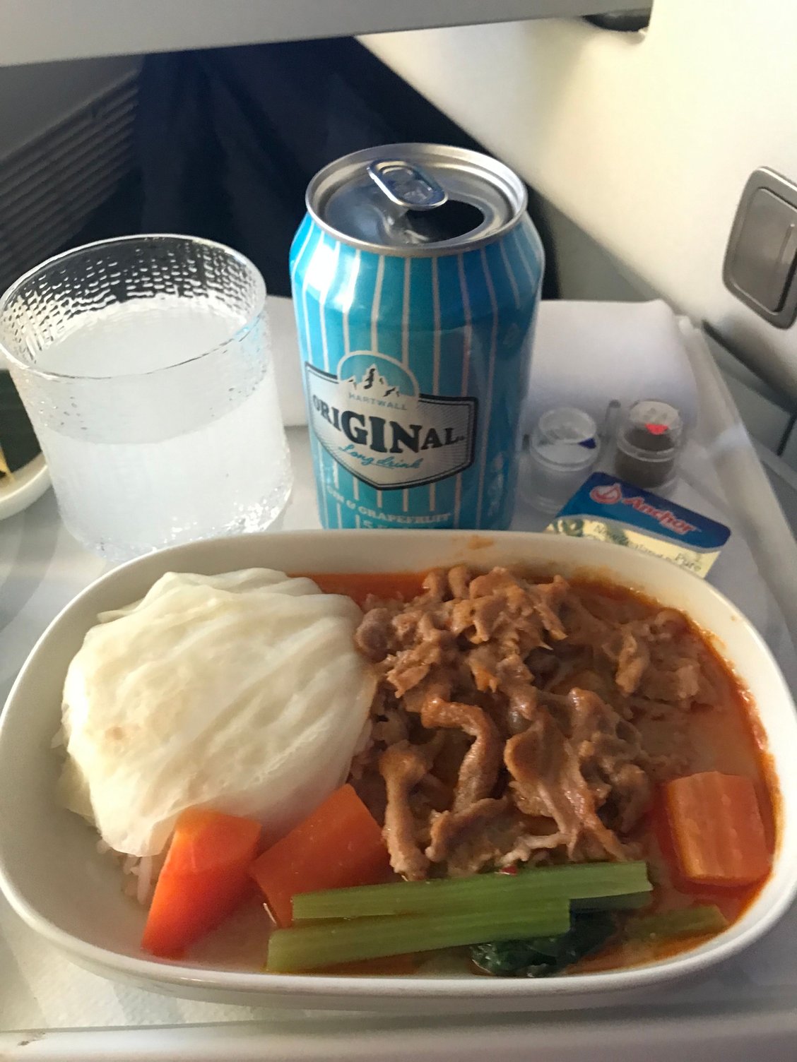 Good food, very frequent top-ups of drinks, attentive crew, and the very same Thai cabin attendant that served me on my flight to BKK 3 weeks ago did so now again. He welcomed me by saying “oh! hello again” which was a nice personal twist