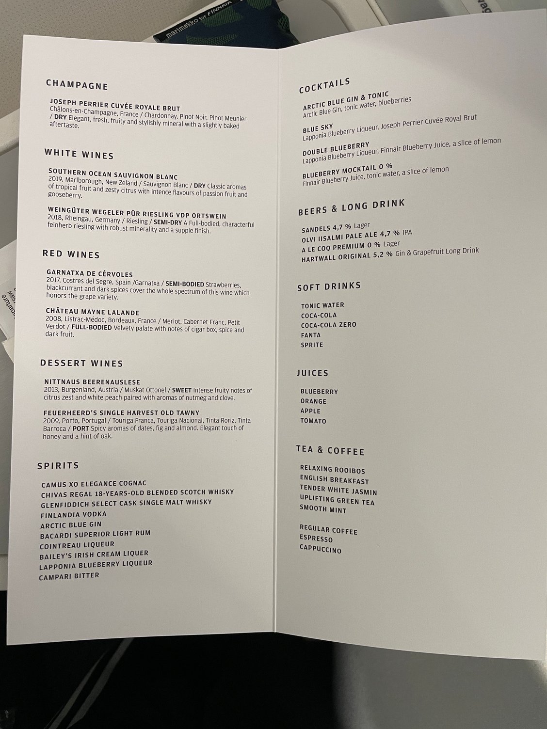 Finnair Long Haul Business Class Food