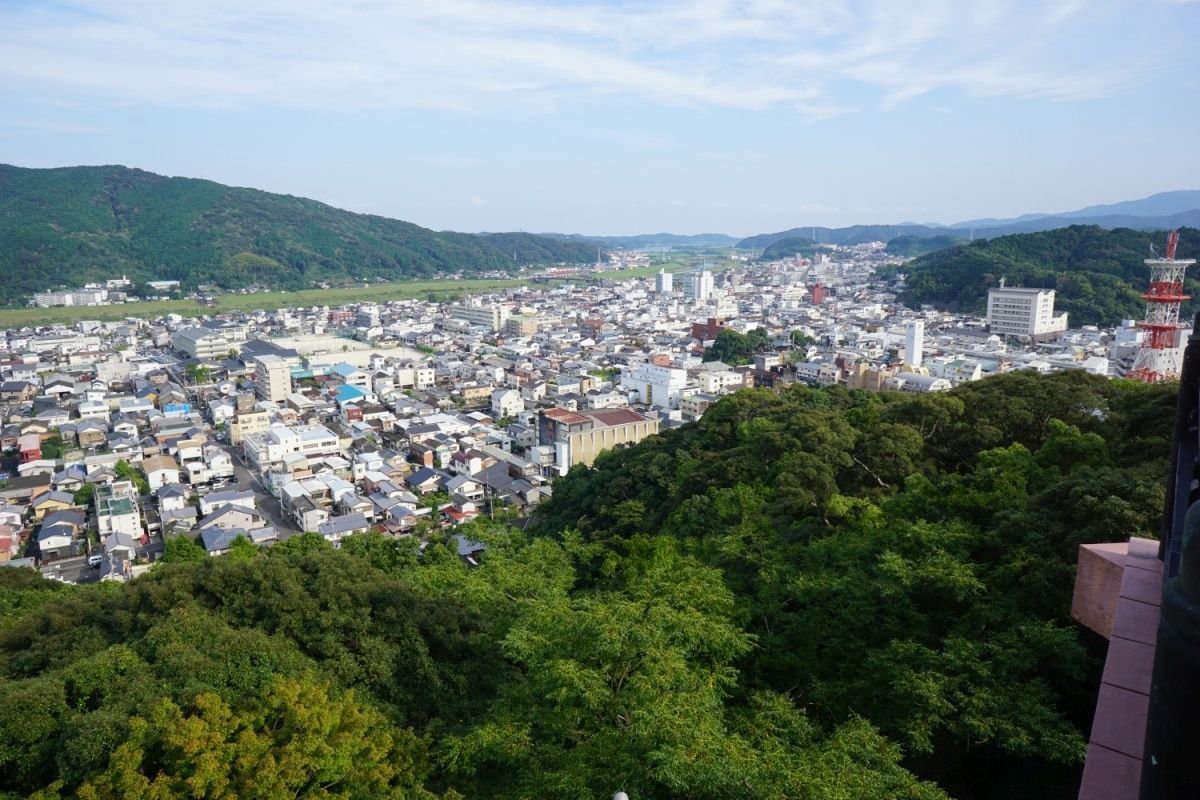 And after crossing the red bridge again, the local history museum is in the rebuilt castle keep on a hill. It's quite small but very recently renovated with exhibits on local history, geography, and the river, as well as views of the city, which seem to be the main attraction of almost every castle anyway. In the picture, the train station and hotel are a bit right of the center, in front of the isolated round hill, and the red bridge and Shimanto river are off to the right.
