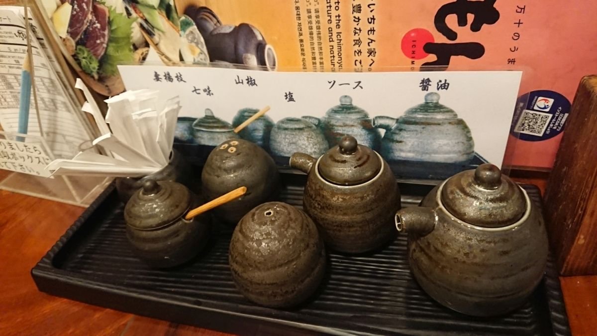 ¥1300/$12 but with a 10% discount since I was staying in the hotel. Plus an explanation of the different sauces available: toothpicks, shichimi/red pepper mix, sansho pepper, salt, "sauce" which was some variation of ponzu, and soy sauce.