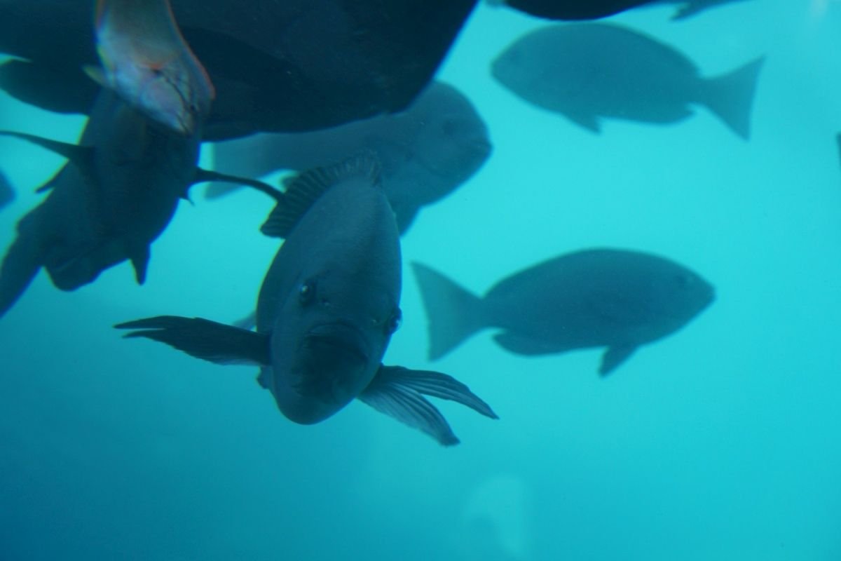 I only made it to the underwater tower, which is exactly as it sounds. Down a bunch of stairs, perhaps 10 meters underwater, is a round room with thick windows that you watch fish through and vice versa. Probably pretty similar to the glass-bottomed boat.