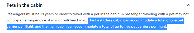 . Five seems high by any standard as you then need to allow basically all certified service animals as well. Can you provide a link where you see FIVE in coach. Usually when traveling with the dog I do pay for F but I have traveled in the main cabin with her as well and was told the same. I have even been denied travel on a specific flight as I was told an animal was already reserved. Thanks in advance.
