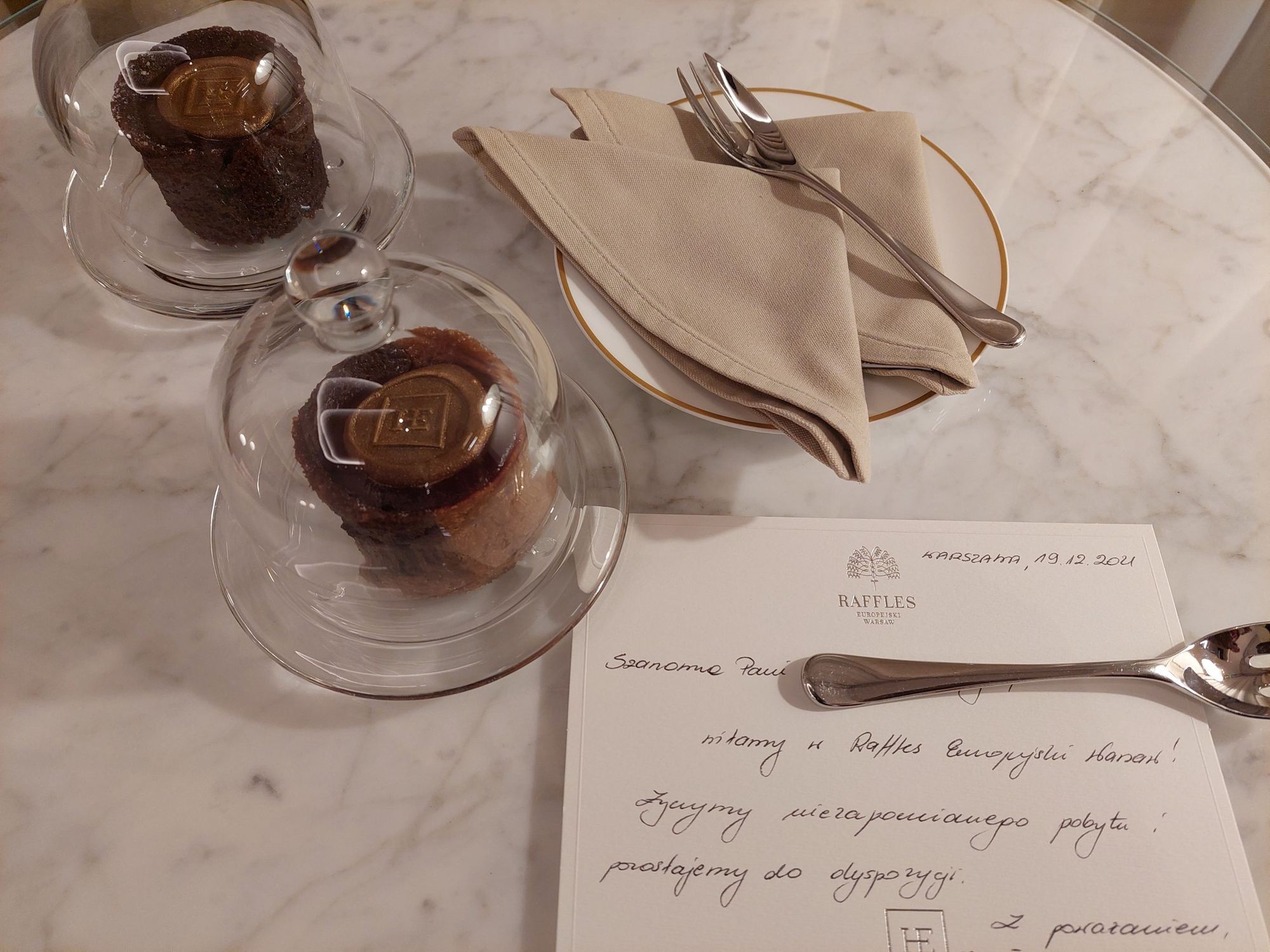 Here is the welcome gift received at Raffles Europejski Warsaw = two cookies