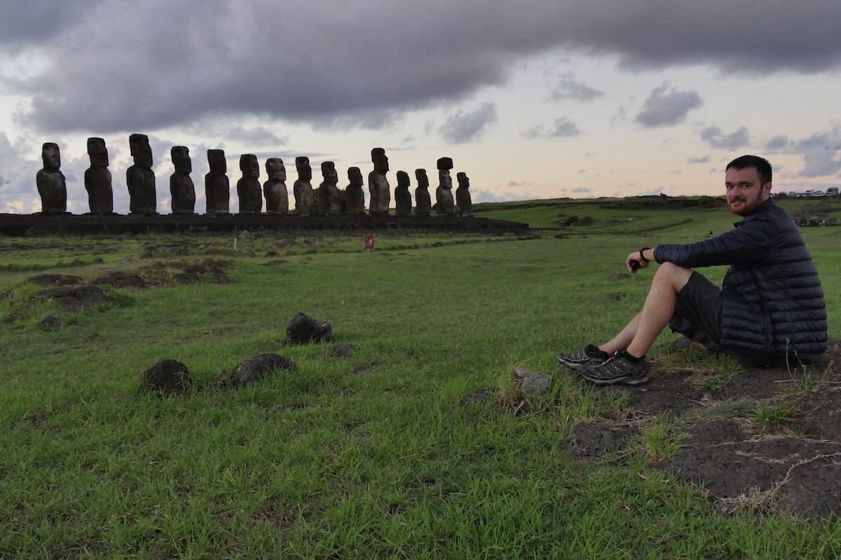 View of Tongariki behind this guy...
