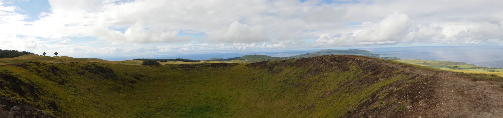 Hiking towards Mount Terevaka, view on Hanga Roa