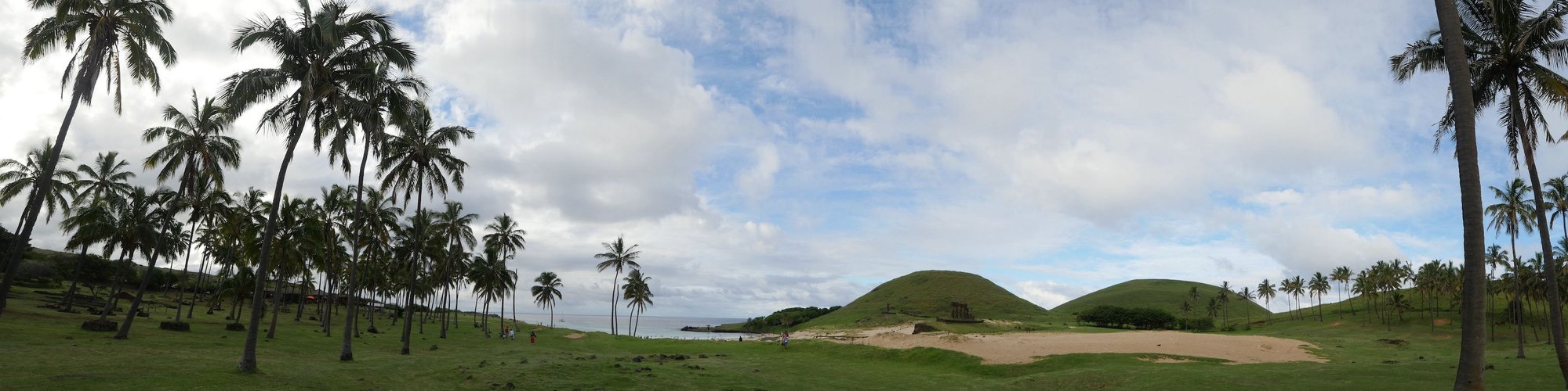 Right behind point Rosalia hill, is located the most famous beach of Arakena, with the very picturesque Palm trees, Moais on the sand and chickens running on the beach ! Arakena is also one of the few places outside Hanga Roa where you can find a few restaurants and souvenir shops.