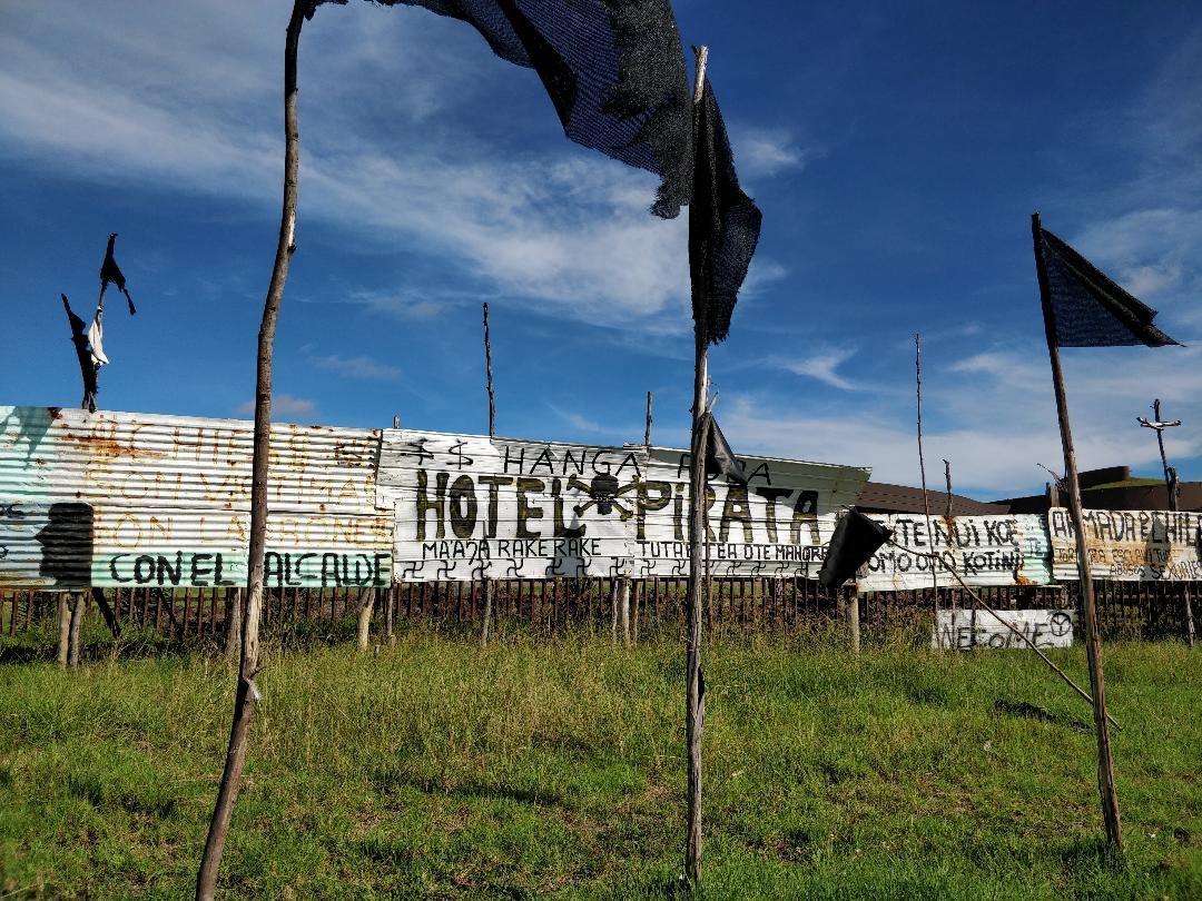 We then drove back to the hotel to pack our stuff and headed downtown to do some last minute market shopping, visit the local post office to send the postcards, and have a last walk in the city and along the ocean... (this is when I realized that the 5-star ecolodge hotel Hanga Roa was still having demonstrations organized by locals in front of it)