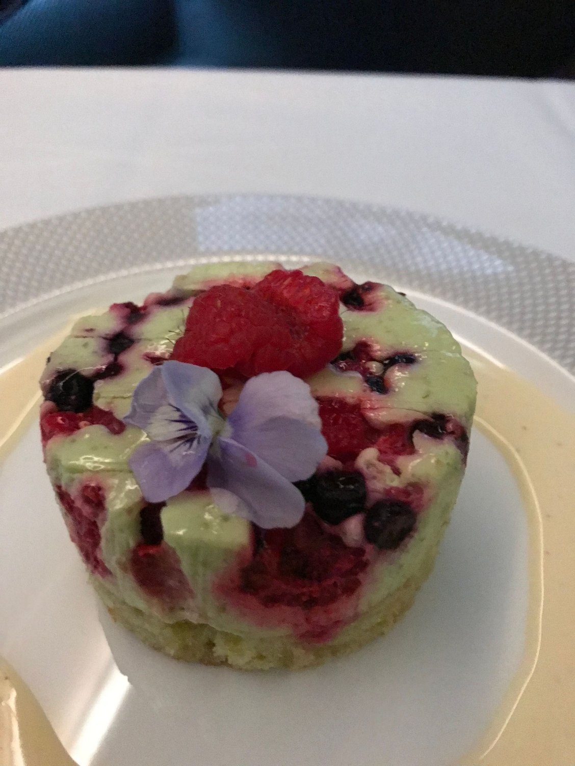 Pistachio sabayon and almond sponge. Not only very pretty but very tasty as well.